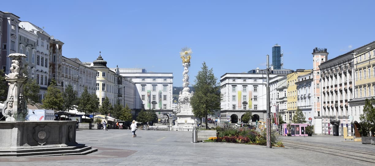 Après avoir déjeuné sur la Hauptplatz de Linz, nous avons fait un tour dans le vieux centre historique. Bordée de hautes maisons de style renaissance, la place close de Linz est la plus grande d’Europe. Au centre, une colonne de la Trinité a été construite par la population en remerciement d’avoir survécu aux drames qui ont frappé la ville au XVIIIe siècle.